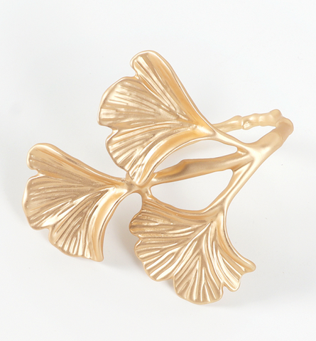 Gold Leaf Guardanapo Anéis Set Metal em forma de planta Trazendo uma Vibe Natural e elegante para seus arranjos tabela